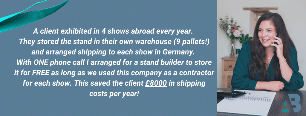 Finding a trusted stand builder can also mean a discount if you book several shows with them on an annual basis, which can make a big difference on the final invoice. You will have peace of mind and they have business booked ahead – win win!